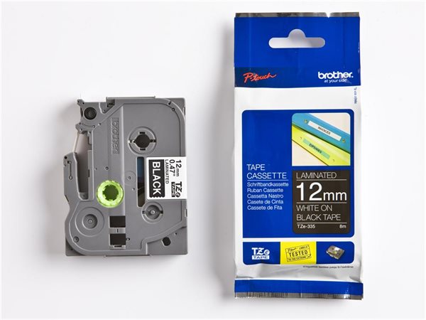 Feliratozógép szalag, 12 mm x 8 m, BROTHER, "TZe-335" fekete-fehér