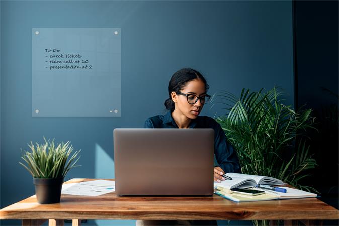 Mini fehértábla modern, keret nélküli kialakítással, otthoni és irodai használatra, jegyzeteléshez, gondolatok, ötletek vagy fontos dátumok feljegyzéséhez.
