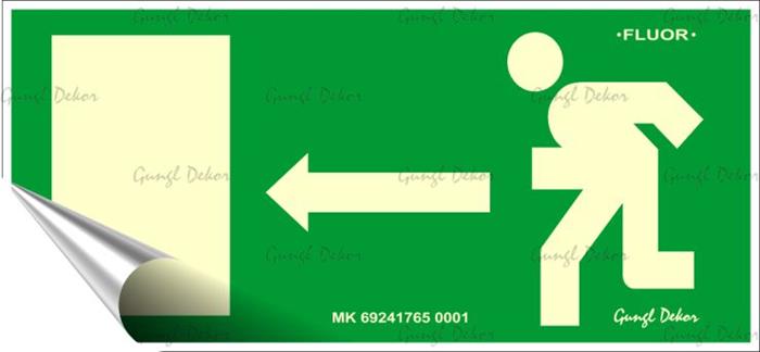 Információs matrica, 25x11,5 cm, fluoreszkáló, utánvilágítós, "Menekülési irány balra"